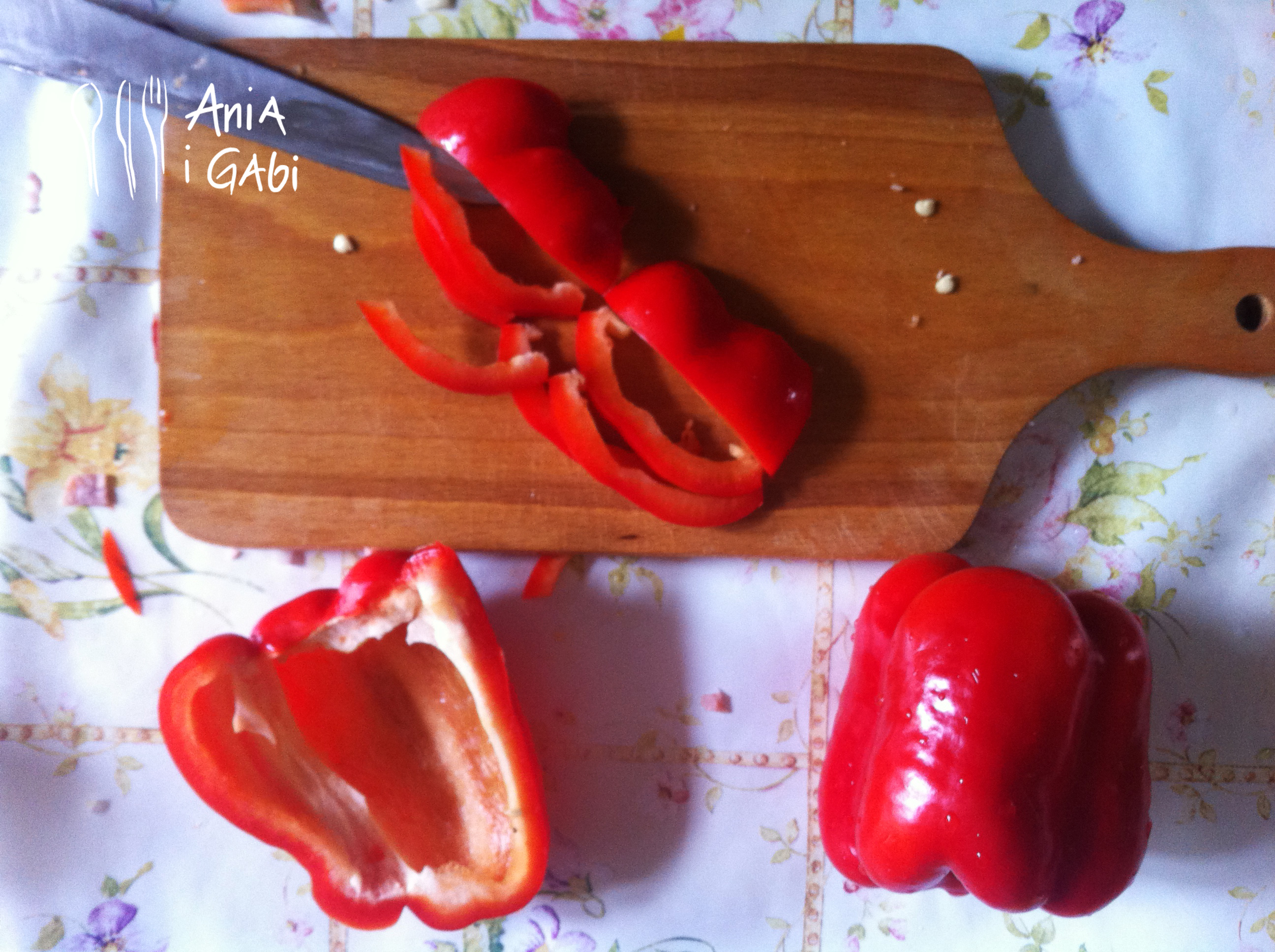 – 2 papryki czerwone, 1 zielona, 1 żółta