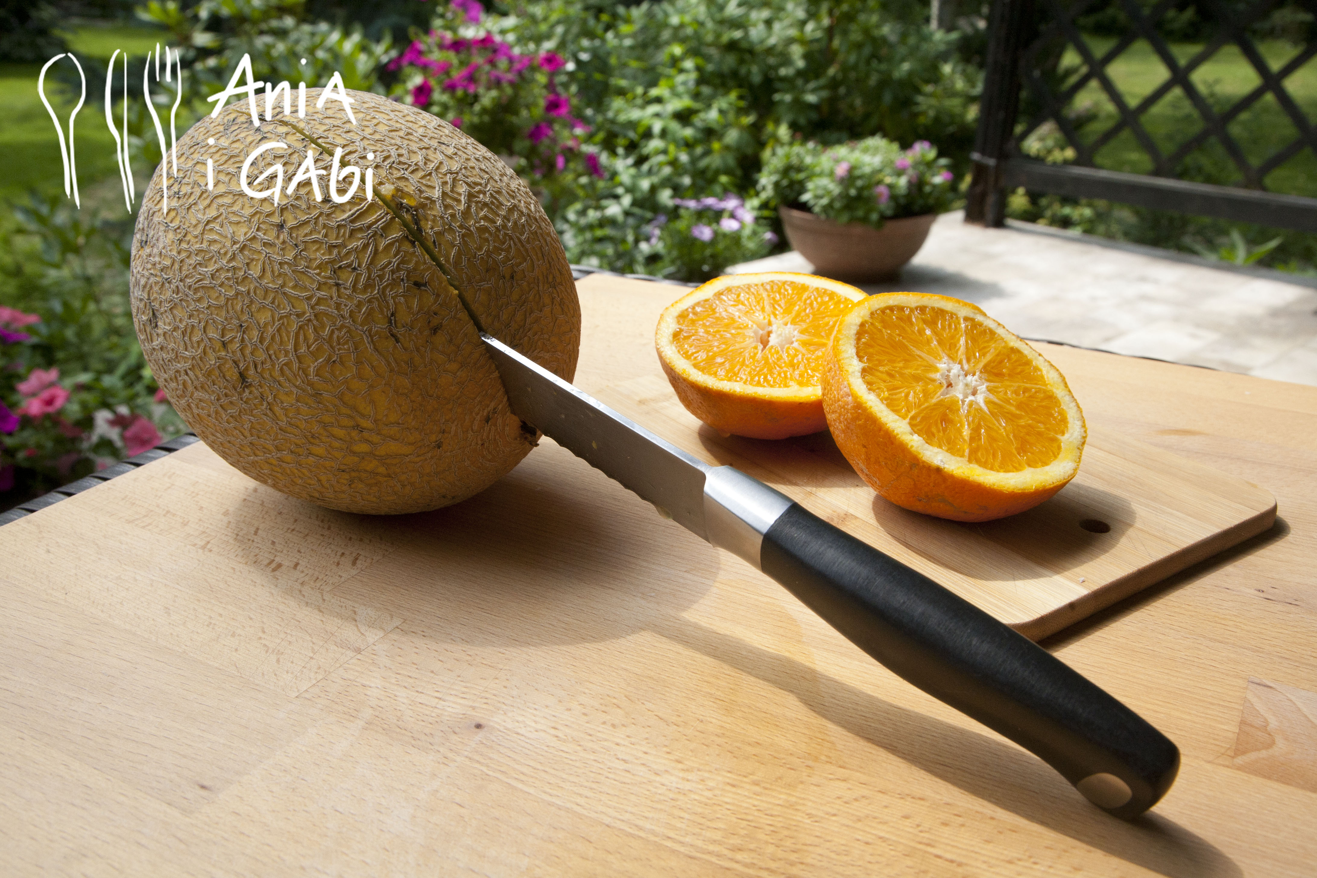 1. Owoce kroimy i pozbawiamy skóry (poza pomarańczami, z których wyciskamy sok).