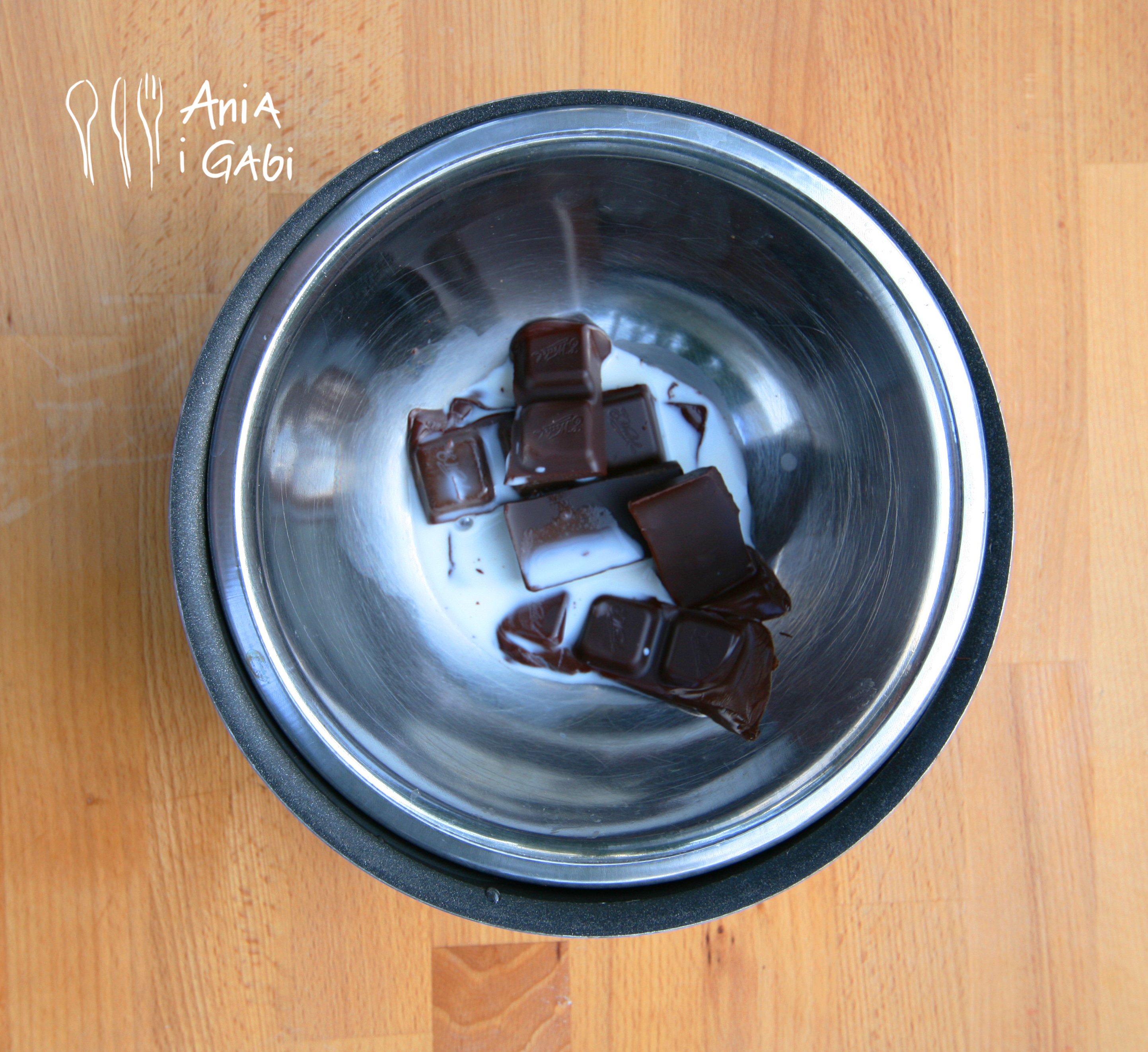 1.W kąpieli wodnej rozpuszczamy czekoladę z mlekiem.